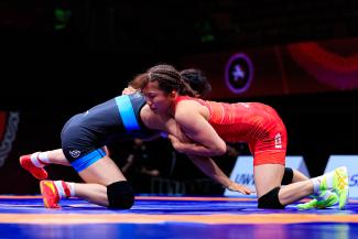 Uchida will face returning silver medalist Yuxuan LI (CHN) for the gold medal after the China wrestler completed a dominant 11-1 victory over Hansika LAMBA (IND). Li got on the scoreboard when Lamba was called passive in the first period. Li then tripped Lamba for a takedown and used two gut-wrenches to lead 7-0. Lamba tried getting a takedown but Li was quick to counter and scored a takedown before giving up a reversal for a 9-1 lead. She finished the match with a takedown 6 seconds before the clock expired.