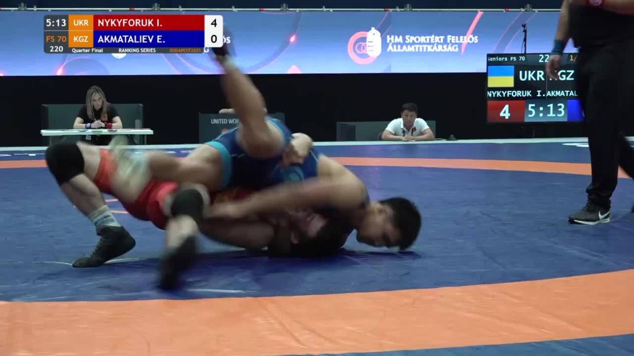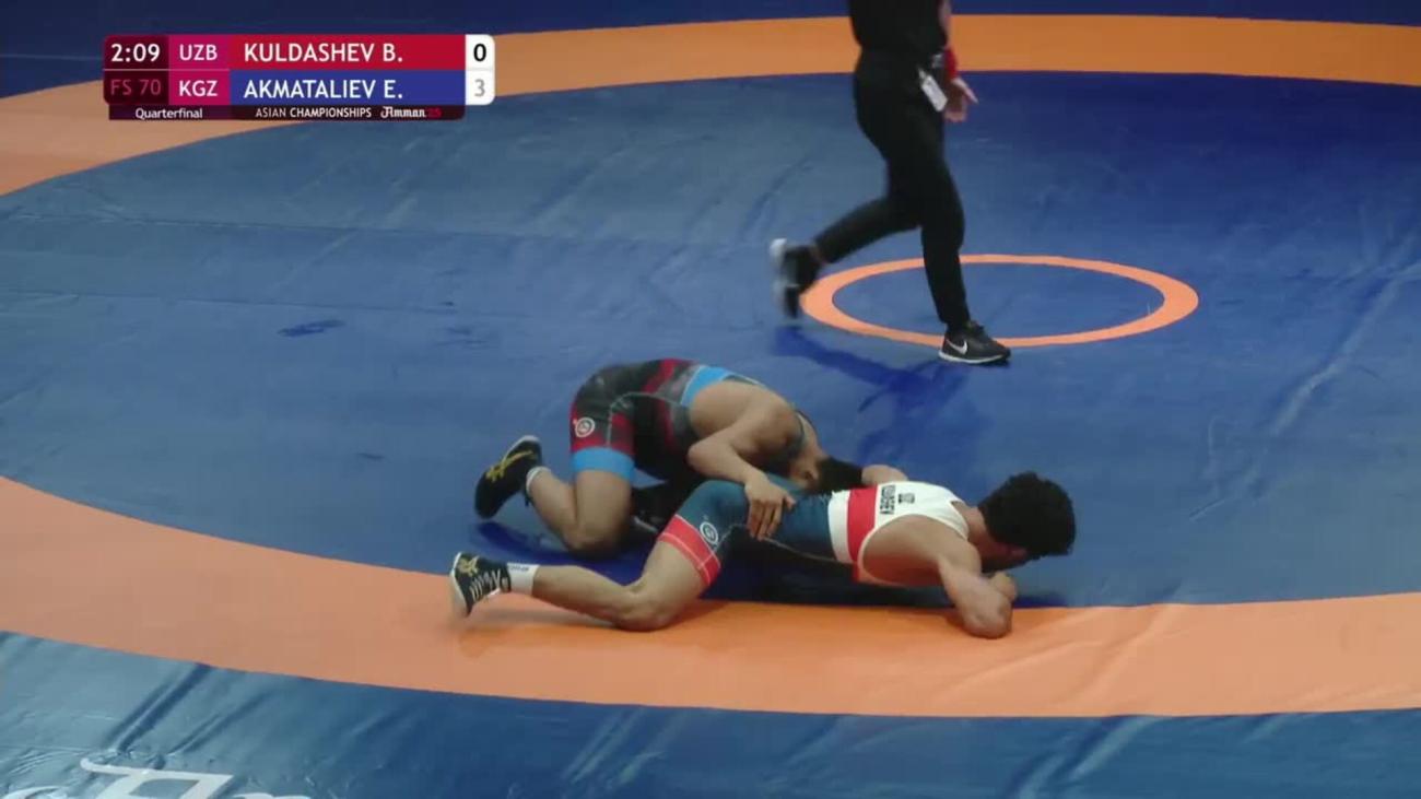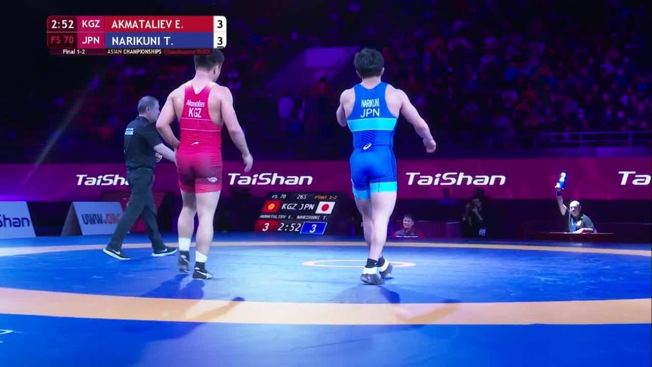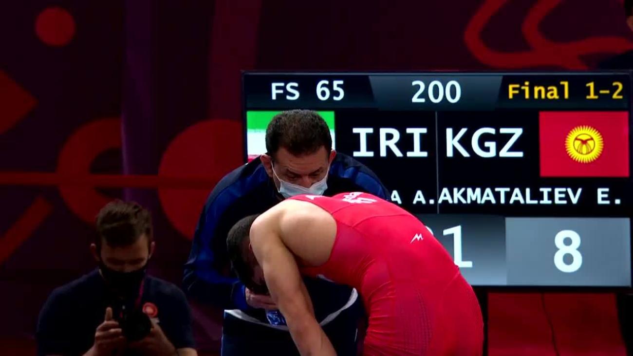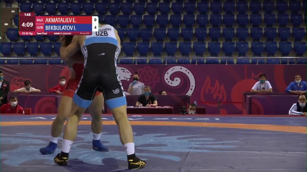 Ernazar AKMATALIEV (KGZ) earned Olympic spot with most amazing performance of Asian Olympic qualifying tournament. Was losing 0-8 in semifinals to 2020 Asian 70kg champion Ilyas BEKBULATOV (UZB) when he clamped on a headlock and threw opponent to back for fall at 2:52. In final, despite nothing at stake, posted wild 15-13 victory over Amir Mohammad YAZDANI (IRI) by scoring pair of 2-point exposures in final 30 seconds....Finished 2nd at 2021 Ukrainian International, losing 5-4 in final to European bronze medalist Ali RAHIMZADEH (AZE)...Lost to Olympic bronze medalist Haji ALIYEV (AZE) 6-4 in quarterfinals at Individual World Cup in December 2020...Won 2019 Takhti Cup with 10-0 victory in final over Georgi REVAZISHVILI (GEO)...5th at 2019 World U-23 after losing to Takuma TANIYAMA (JPN) 4-3 in semifinals and Ihor NYKYFORUK (UKR) 8-8 in bronze-medal match...7th at both 2018 and 2019 Asian Championships...Silver medalist at 2018 Asian Junior Championships with 6-2 loss to Taniyama in final....2015 Asian cadet bronze medalist.