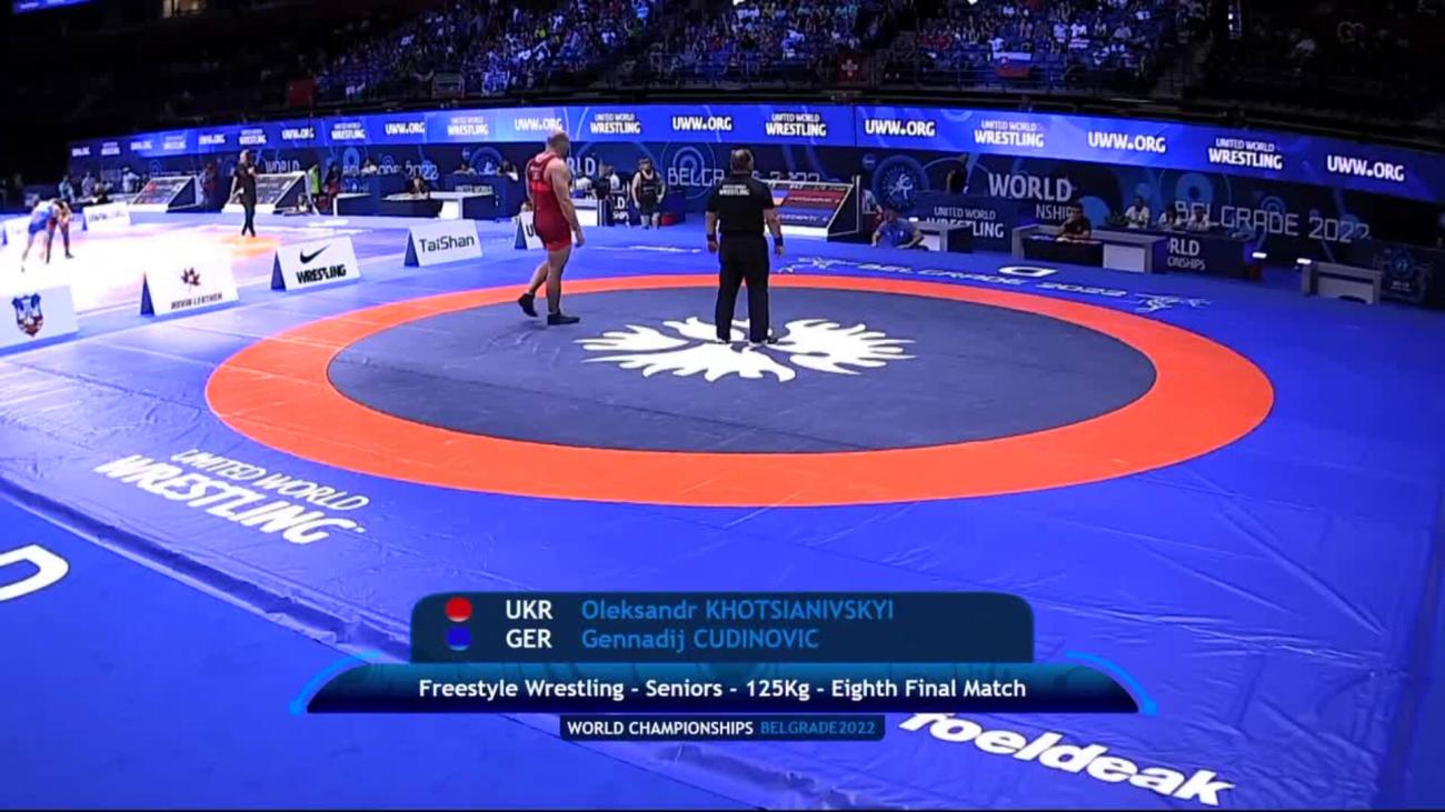 Gennadij CUDINOVIC (GER) had a dominant semifinal against two-time World medalist and two-time Olympian Jamaladdin MAGOMEDOV (AZE) defeating him 15-6. That win gave the German his ticket to Tokyo Olympics, his first after he had failed to qualify for the Rio Games. After competing for a long time at the 97kg weight class, Cudinovic shifted to 125kg in early 2020 and hoped to qualify Germany in the weight category. He works for the German Police.