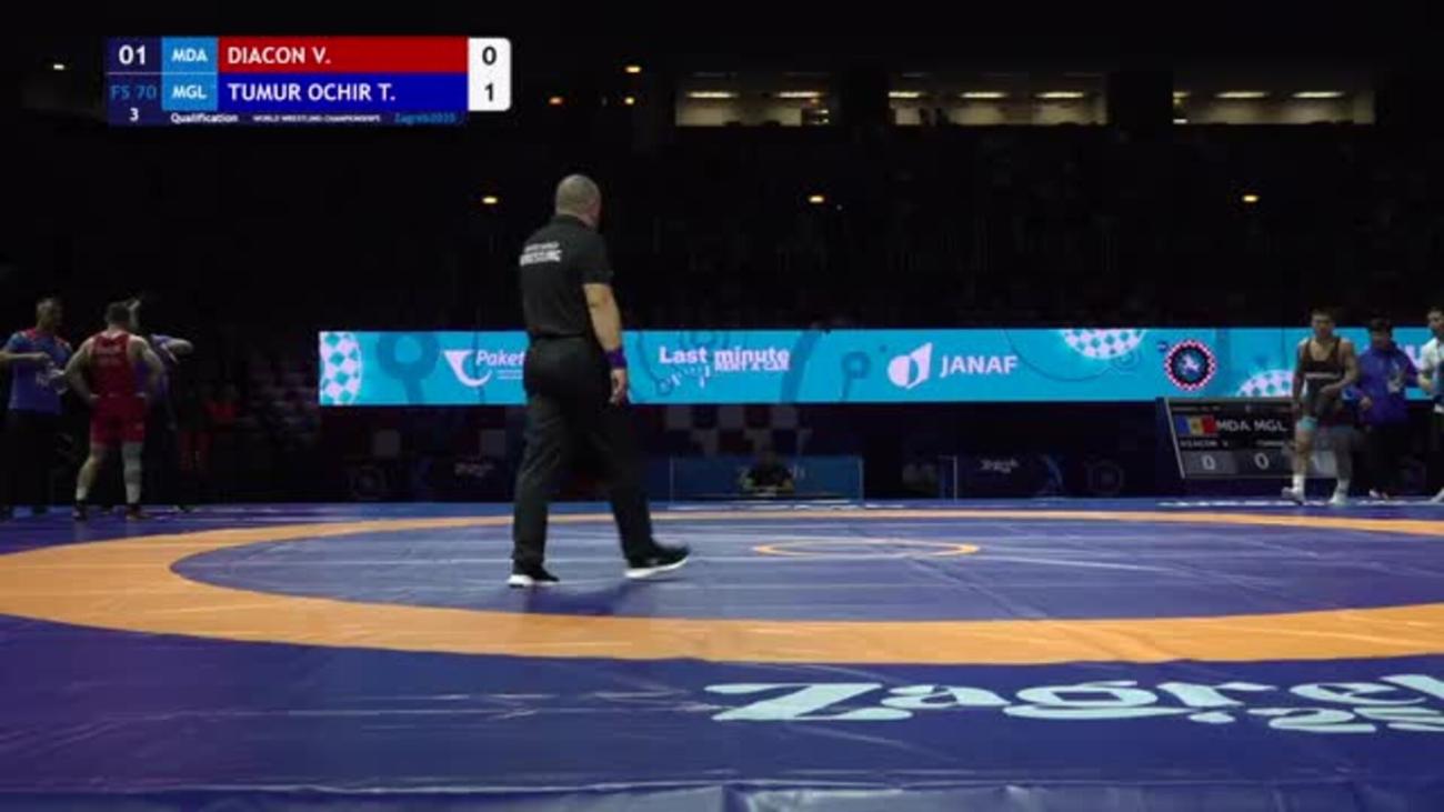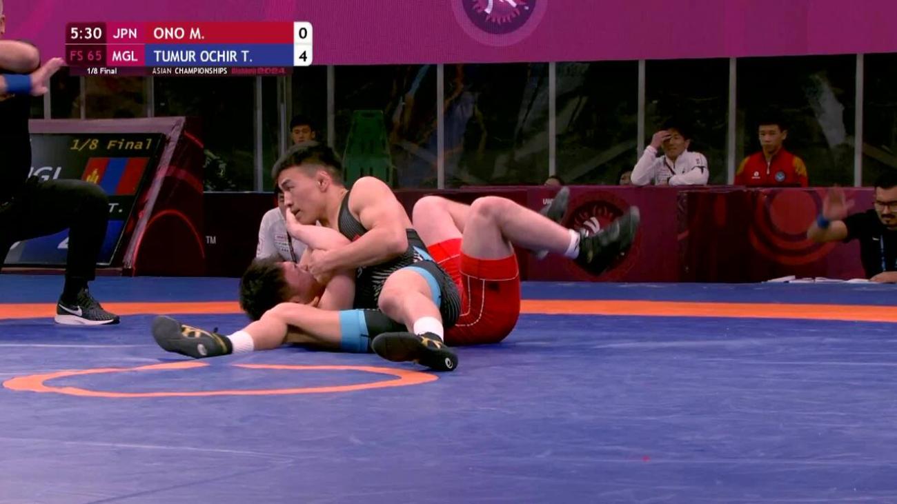 Tulga TUMUR-OCHIR (MGL) placed 5th at 2019 World Championships to earn place in 1st Olympics. Lost 6-2 to Daulet NIYAZBEKOV (KAZ) in quarterfinals, beat Alexander SEMISOROW (GER) 8-0 in repechage, lost 8-7 to Bajrang PUNIA (IND) in bronze-medal match after leading 6-0....This year, silver medalist at Matteo Pellicone tournament in March behind Punia, losing 2-2 on takedown in final 30 seconds....2019 Asian U-23 champion, winning all three matches by fall or technical fall without giving up a point. In final, pancaked Amir Mohammad YAZDANI (IRI) twice before winning by fall....In 2018, 7th at World Championships after losing to Punia 5-3 in quarterfinals, 9th at World U-23 after 1st-round loss to Rio 2016 silver medalist Rei HIGUCHI (JPN). Also, champion of Takhti Cup, 3rd at Spain Grand Prix and 2nd at Dmitri Korkin Tournament (beat Higuchi by technical fall in quarterfinals)....2015 Asian cadet champion.